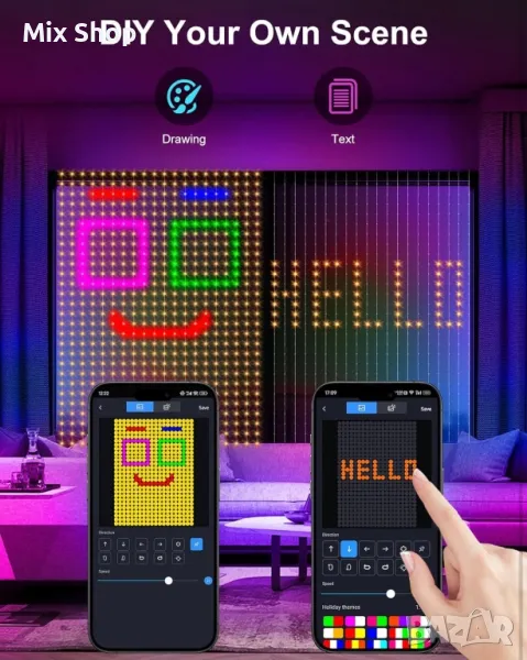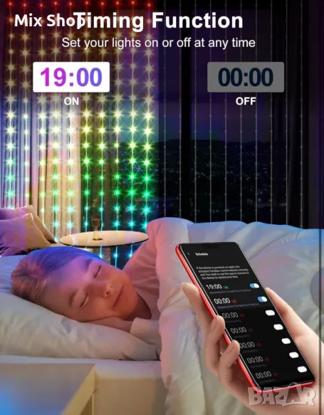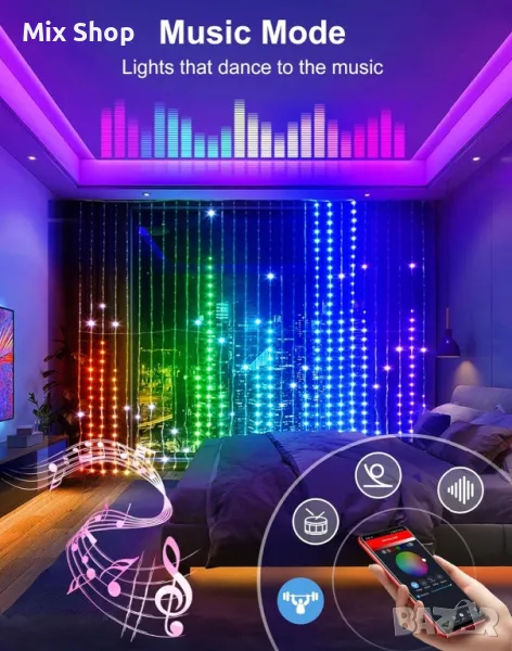 Интелигентни LED светлини за завеси с контрол на приложението: LED светлините за завеси 540 вдъхват живот на вашето пространство с персонализирани функции. Управлявайте светлините си без усилие чрез приложението, като избирате от 144+ анимирани ефекта, които да отговарят на вашето настроение, събитие или нужди от декорация. Перфектни както за вътрешна, така и за външна употреба, тези интелигентни светлини за завеси предлагат безкрайни възможности за създаване на зашеметяващи светлинни дисплеи.