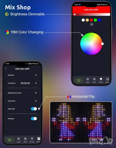 Гъвкав дизайн за всеки повод: Независимо дали украсявате за Коледа, Хелоуин, рождени дни или друго специално събитие, тези RGB светлини за завеси, променящи цвета си, създават перфектната атмосфера. Идеални за празничен декор, украса за партита и дори за професионална фотография или видеозаписи, техните динамични, адаптивни анимации добавят магия към всяка сцена.