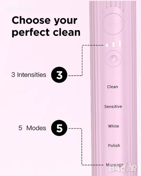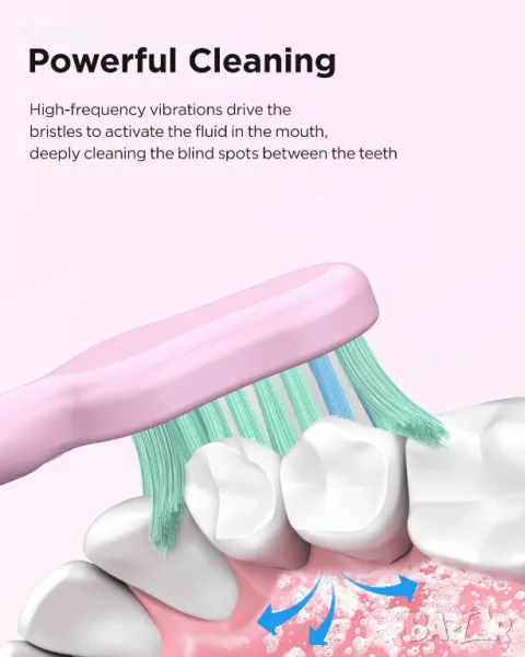 Звукова електрическа четка за зъби, 4 резервни глави, 3 нива и 5 режима, розова