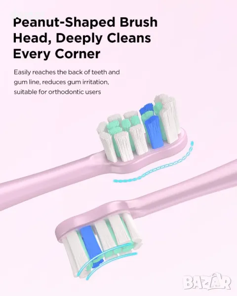 Електрическата четка за зъби Yteath Pro съчетава персонализирана грижа за устната кухина с усъвършенствани почистващи функции. Предлага 3 нива на интензивност и 5 режима, включително Sensitive за нежно почистване, което го прави подходящ за всички нужди за орално здраве. С 47 000 VPM звукови вибрации, той премахва до 125% повече плака, особено в труднодостъпни зони, насърчавайки по-здрави зъби и венци. Неговата глава на фъстъчената четка е идеална за деца, тези с по-малка уста или ортодонтски нужди. Интелигентен таймер осигурява оптимално четкане, докато водоустойчивостта IPX7 позволява безопасна употреба във влажна среда. Перфектен за пътуване, той може да се похвали с 60-дневен живот на батерията с USB-C зареждане и включва калъф за пътуване без BPA. Пакетът съдържа четката за зъби, 4 глави Dupont, държач, калъф за пътуване, USB-C кабел и ръководство (адаптер не е включен).