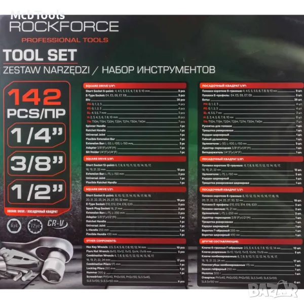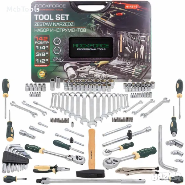 Комплектът инструменти ROCKFORCE RF-41421-5 са изработен от висококласна хром-ванадиева стомана с добавени специални метални смеси за отлични физични и механични свойства. Инструментите са с повърхностна обработка (перлена и никелова), която осигурява защита срещу корозия и придава естетичен вид.