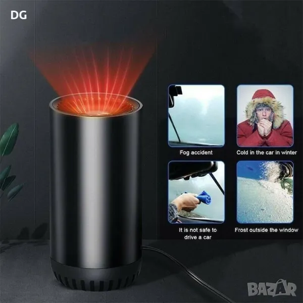 Този преносим автомобилен нагревател е предназначен за бързо отстраняване на скреж и мъгла от предното стъкло на автомобила и има 2 режима на настройка: отопление и охлаждане. Идеален е за размразяване/изпотяване на прозорци и предни стъкла през зимата. Много здрава вендуза с предпазен заключващ механизъм или плътно прилягане. Може да се използва и като вентилатор за кола за охлаждане на колата през лятото.