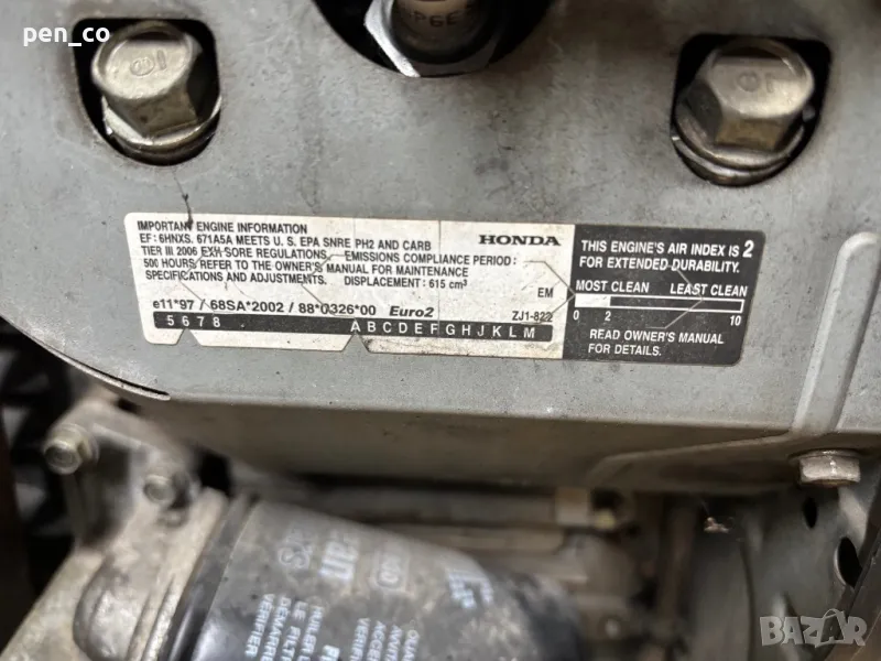 Двигател Honda 20 к.с. До последно е бил на генератор . Работил е на газ. Стартерно запалване.