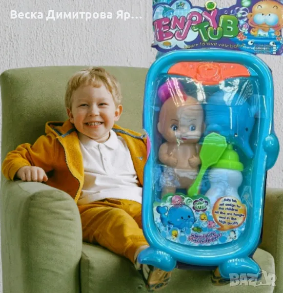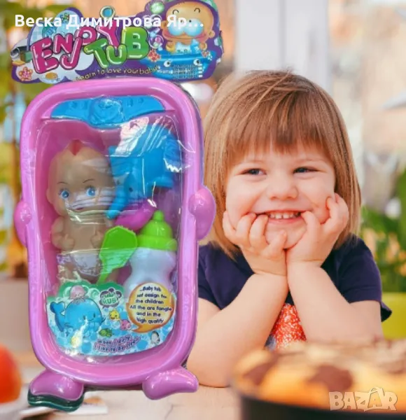 Комплект за деца - Кукла с бебешка вана и аксесоари за баня → Обява 48721681