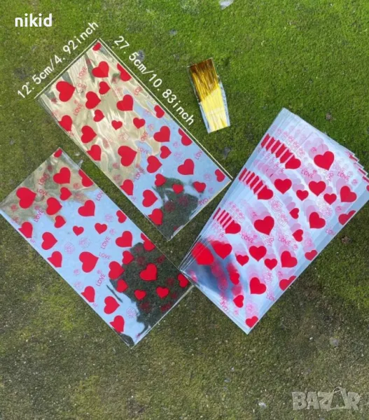 10 бр червени сърца подаръчни торбички големи опаковъчни пликчета дребни сладки ръчна подарък → Обява 48722916