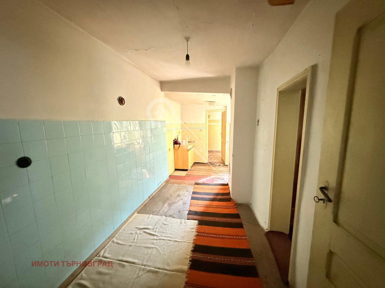 Имоти Търновград Ви предлага къща в кв.ЕТЪР. Имотът се намира в близост до АЕК'ЕТЪРА, автобусна спирка и хранителен магазин. Къщата е с РЗП от 60 кв. м. и е разположена на два етажа, като на първи етаж се състои от: механа, избено помещение и допълнителна стая. Посредством външни стълби се стига до втори етаж: коридор, две спални, всекидневна, баня с тоалетна и тераса. Дворното място е с площ от 187 кв. м. Оферта 13777.