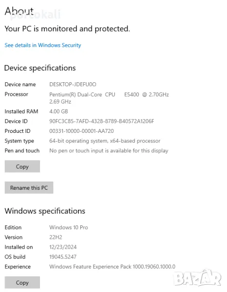 Операционна система: Да, Windows 10 Pro