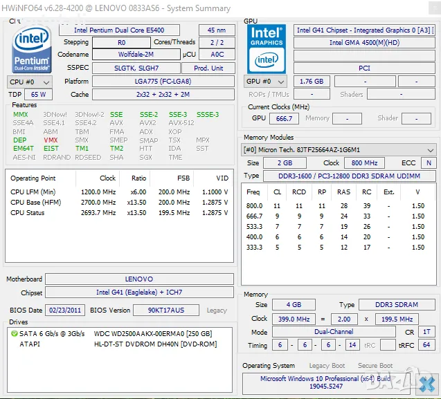 Процесорът е Intel E5400, двуядрен