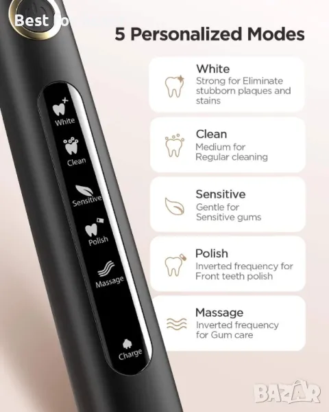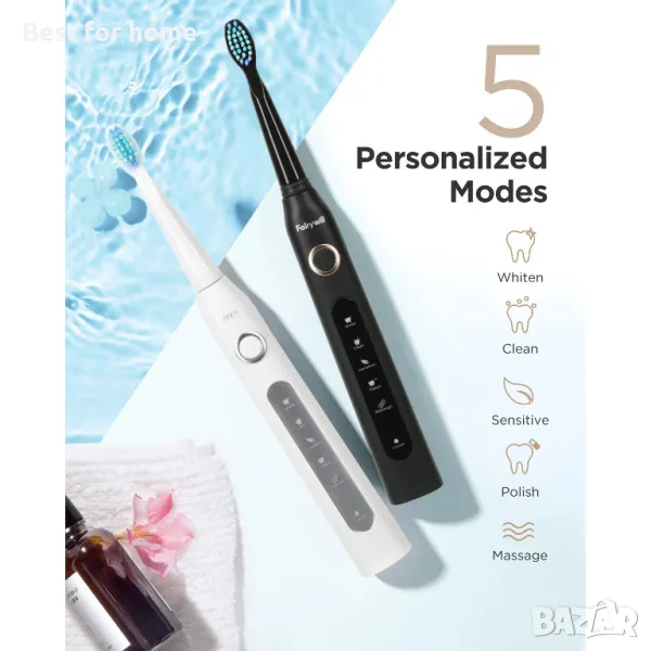 FairyWill D7 Double Pack Electric Toothbrushes е интелигентна четка за зъби, която се отличава с високо качество, ефективност и стилен дизайн. Той ви осигурява идеално потребителско изживяване, като разполага с множество режими за почистване на зъбите и избор на подходящата позиция. Освен това има интелигентен сензорен екран, който ви улеснява при работа и управление на устройството.
