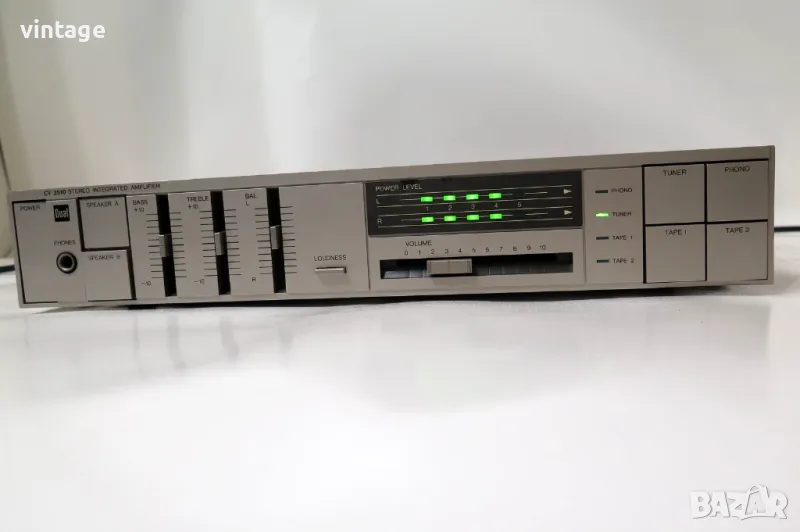 Транзисторен стерео усилвател, отличен технически, много добър външен вид. Корекции: bass, treble, loudness. Много добър саунд! Приложените снимки и видео са реални!