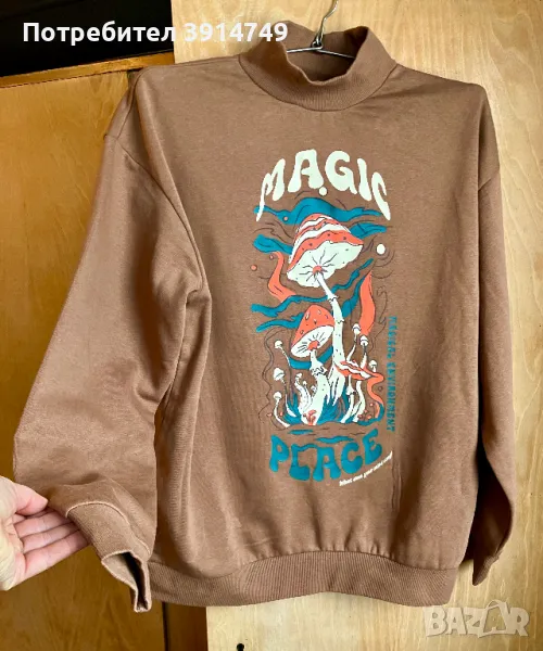 Пуловер, суитшърт, блуза ‘Magic Place’ принт, мек, лек, топъл, ватиран отвътре, 158-164 / М, НОВ → Обява 48725095