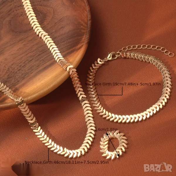 Комплект дамски колие, гривна и пръстен, позлатени → Обява 48725702
