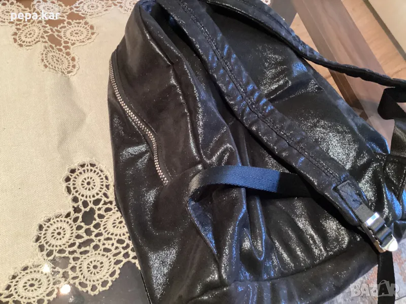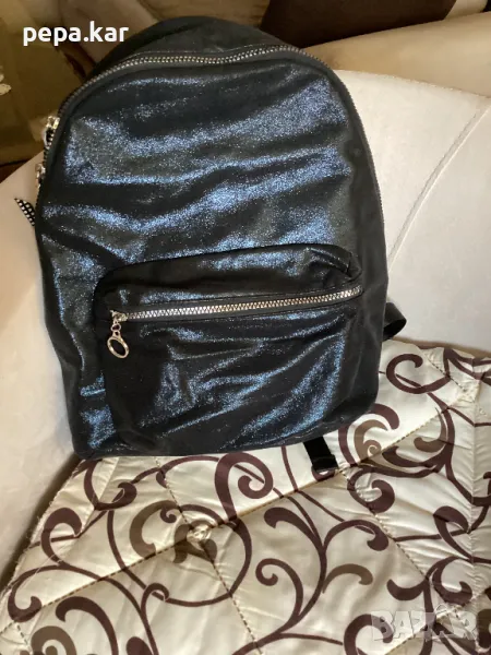 Раница Reserved,черна изкуствена кожа с леки ефекти,метални ципове,преден джоб с. Цип и вътрешен с цип. Много лека. 40/30/10
