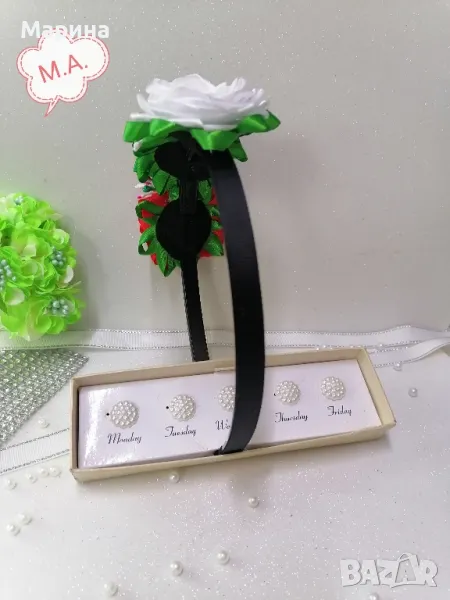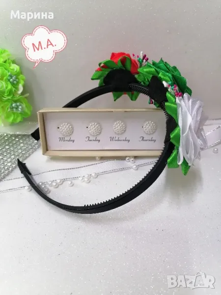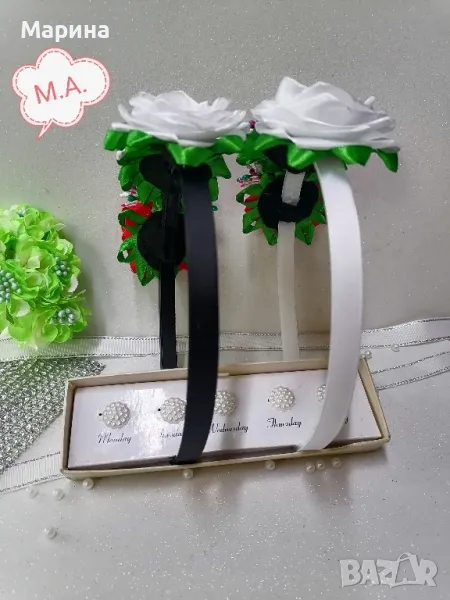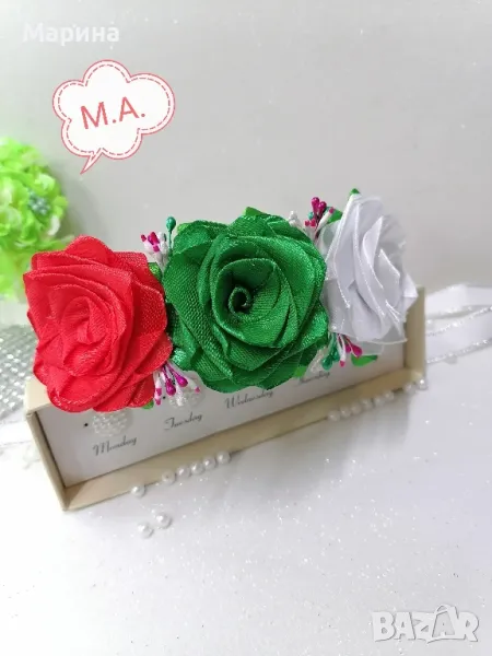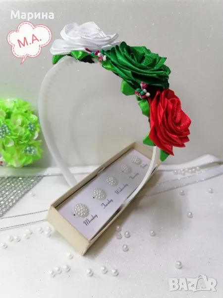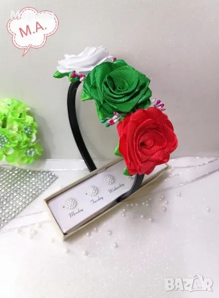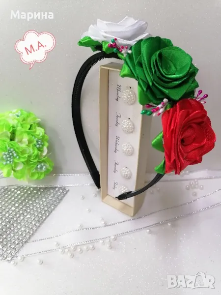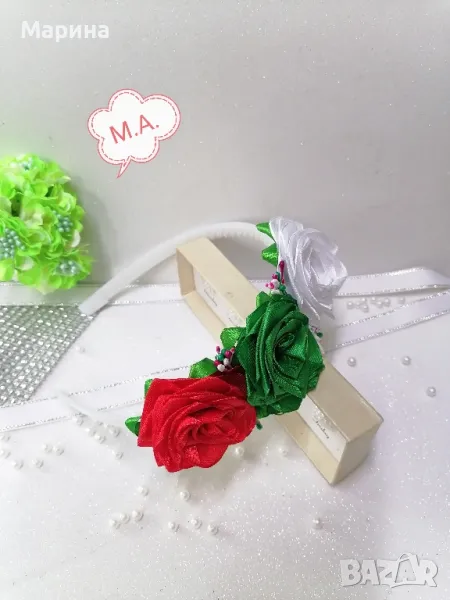 Оригинални аксесоари за коса с червена, зелена и бяла рози!