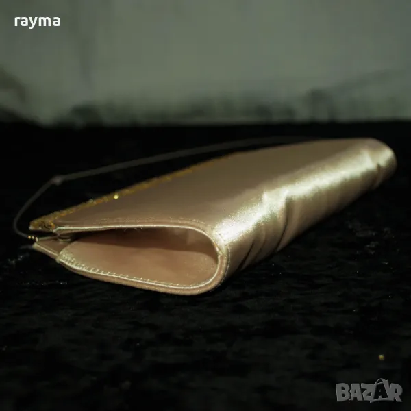Италианска малка сатенена чанта стил клъч златист цвят → Обява 48727748