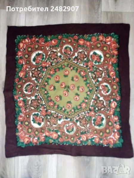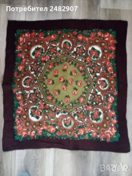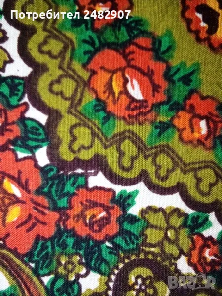 Стара кърпа за глава / забрадка от времето на соца. Размери - 63/67 см. Чисто нова, не е използвана.