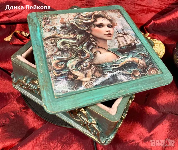 Ръчно декорирана кутия за бижута с подвижен капак → Обява 48729280