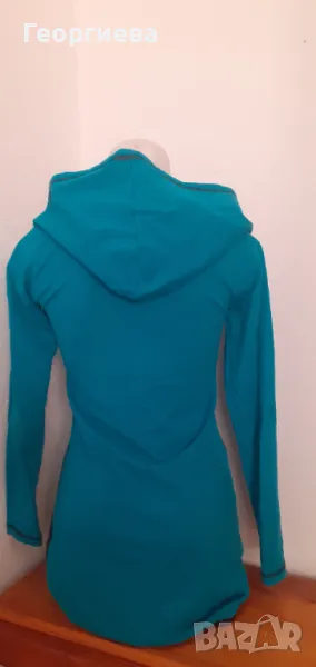 Блузата е слага на само 2 пъти, без забележки, неразличима от нова. Цвят тюроазено с много ефектна качулка.