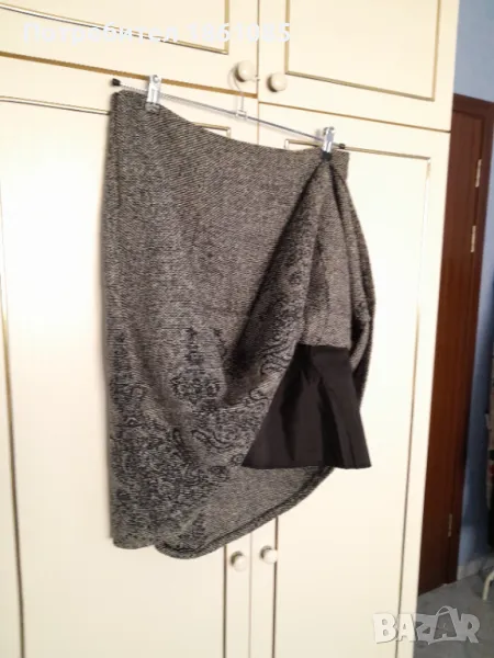 Вносна дамска пола без забележки от дебел вълнен плат, с хубава кройка и качествена изработка.Дължината е 70 см , обиколка на талията - 88 см,има подплата, цената е символична.