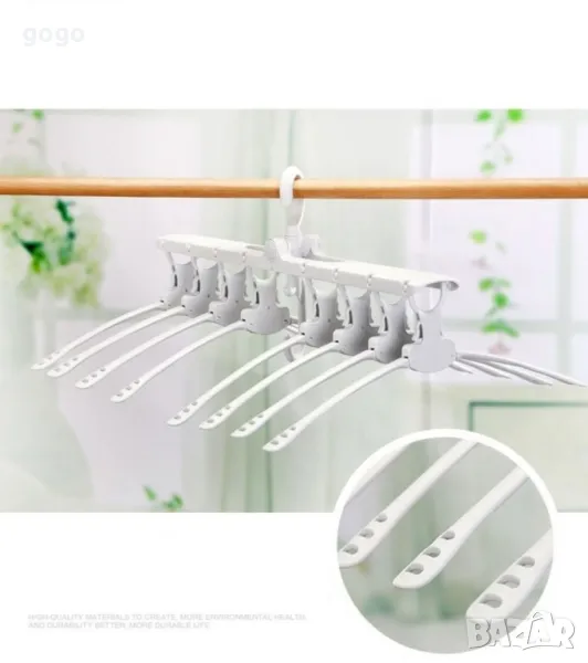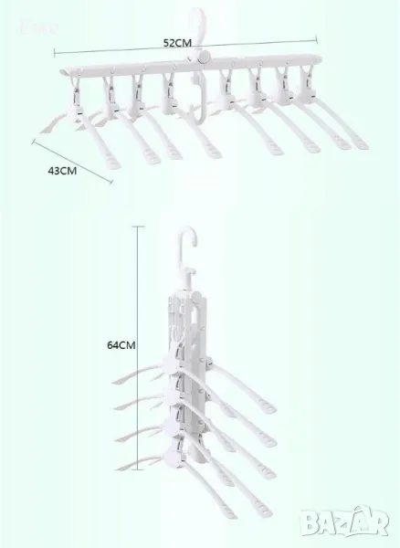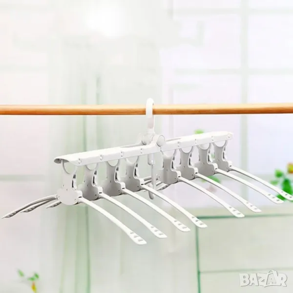 Това е 8 в 1 магическа закачалка за дрехи, многослойна, сгъваема, от пластмаса, неплъзгаща се, която се върти на 360 градуса и ще ви спести много място при съхранението на дрехите ви, а може да бъде използвана и като сушилник.