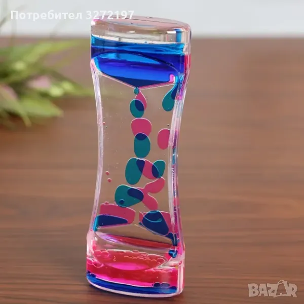 Прозрачен антистрес пясъчен часовник с цветна течност 5x3x13,5см