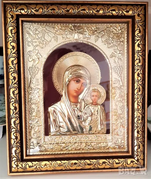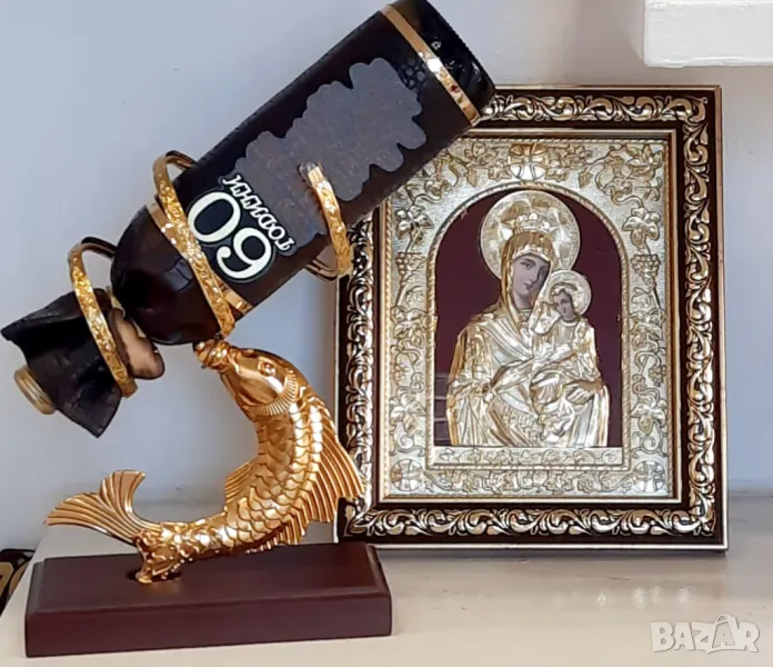 Красива икона със златен цвят, който не се променя и бутилка, която може да се използва и в последствие.