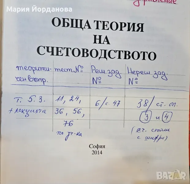 Обща теория на счетоводството → Обява 48730726