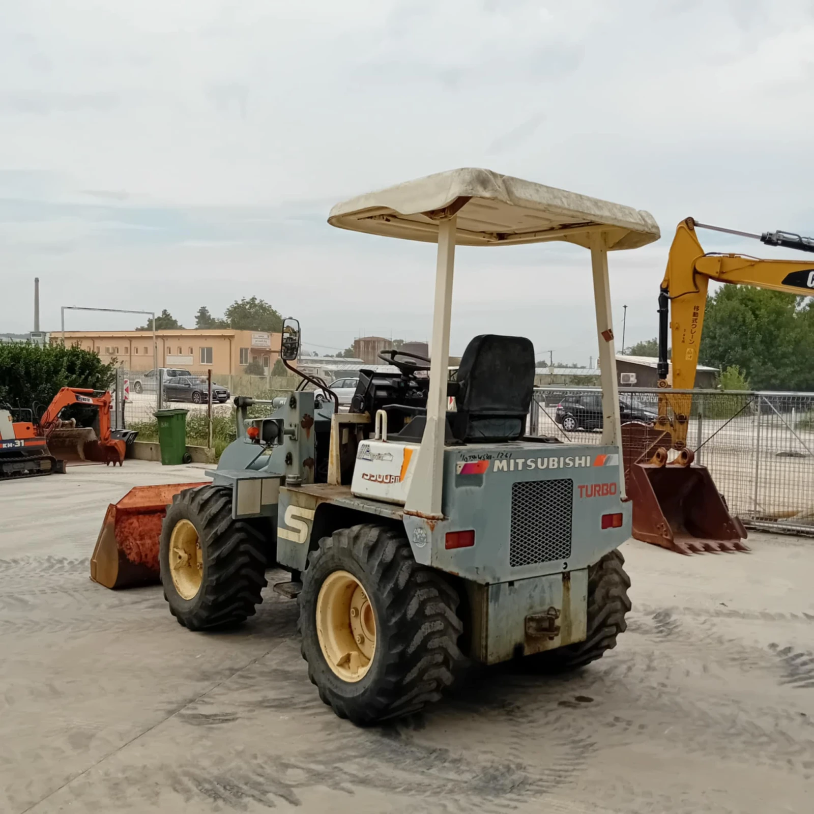 Mitsubishi WS300A е компактен колесен товарач с работно тегло около 3200 кг, стандартен капацитет на кофата около 0, 5 м³ и размери, включително дължина от приблизително 4, 2 метра. Той е оборудван с 4 цилиндров Mitsubishi двигател, работен обем 1, 5 литра K4F-DT с мощност 37 к. с. Трансмисията обикновено предлага две скорости напред и една назад, с максимална скорост напред от 15, 0 км/ч. Основни спецификации; Работно тегло: Около 3200 кг. Обем на кофата: Приблизително 0, 5 м³ . Размери: Дължина: Около 4220 мм. Височина: Около 1995 мм. Ширина: Приблизително 1690 мм. Двигател: Модел: Mitsubishi K4F-DT. Номинална мощност: 37 к. с. при 2400 об/мин. Работен обем: 1, 5 л. Трансмисия: 2 скорости напред / 1 скорост назад. Максимална скорост на движение: 15, 0 км/ч (напред). Гуми: Обикновено 15, 5/60-18. Съчленена рама: Съчленена рама за маневреност.