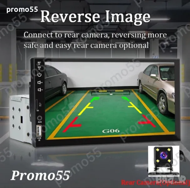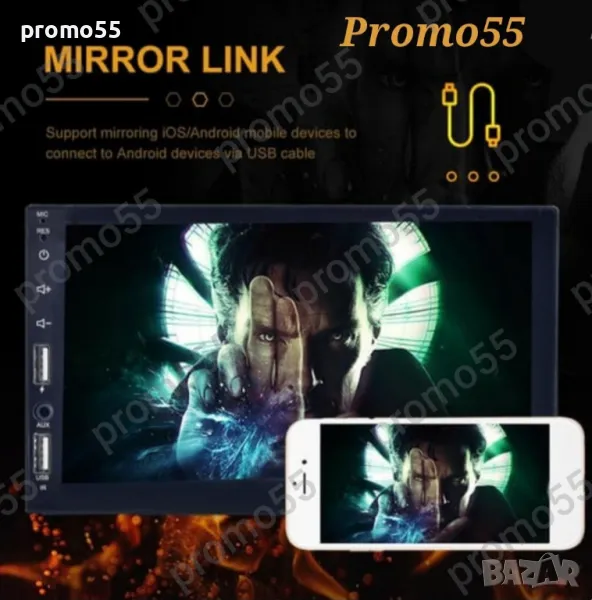 Функции: зарядно за телефон, Video Player, поддържа камера за паркиране, флашка;