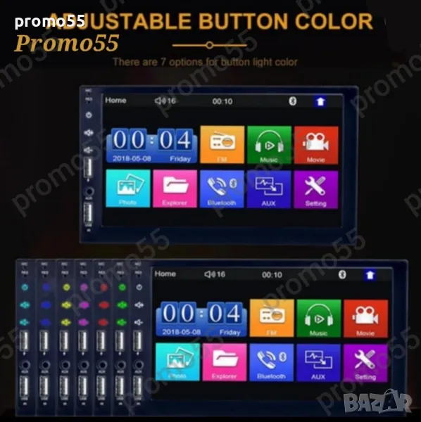 MP5 плеърът възпроизвежда видео и аудио файлове с високо качество. Мултимедията за кола има много портове, входове и изходи, които ще ви позволят да свържете външни устройства или медии към нея. Има видео изход за свързване на допълнителен монитор или навигатор с видео вход. Има и видео вход за свързване на камера за задно виждане и други устройства. 7-инчов LCD дисплей с висока разделителна способност, динамичен интерфейс на менюто.