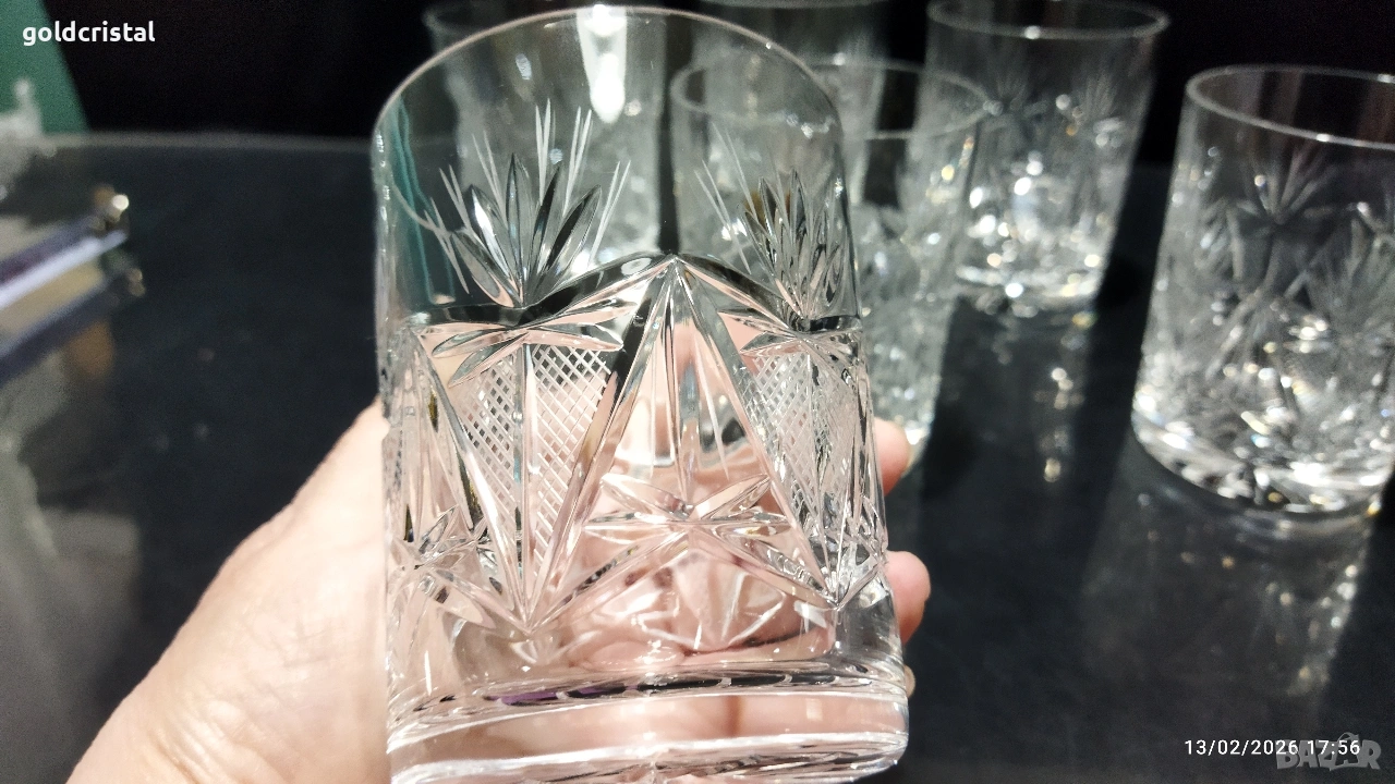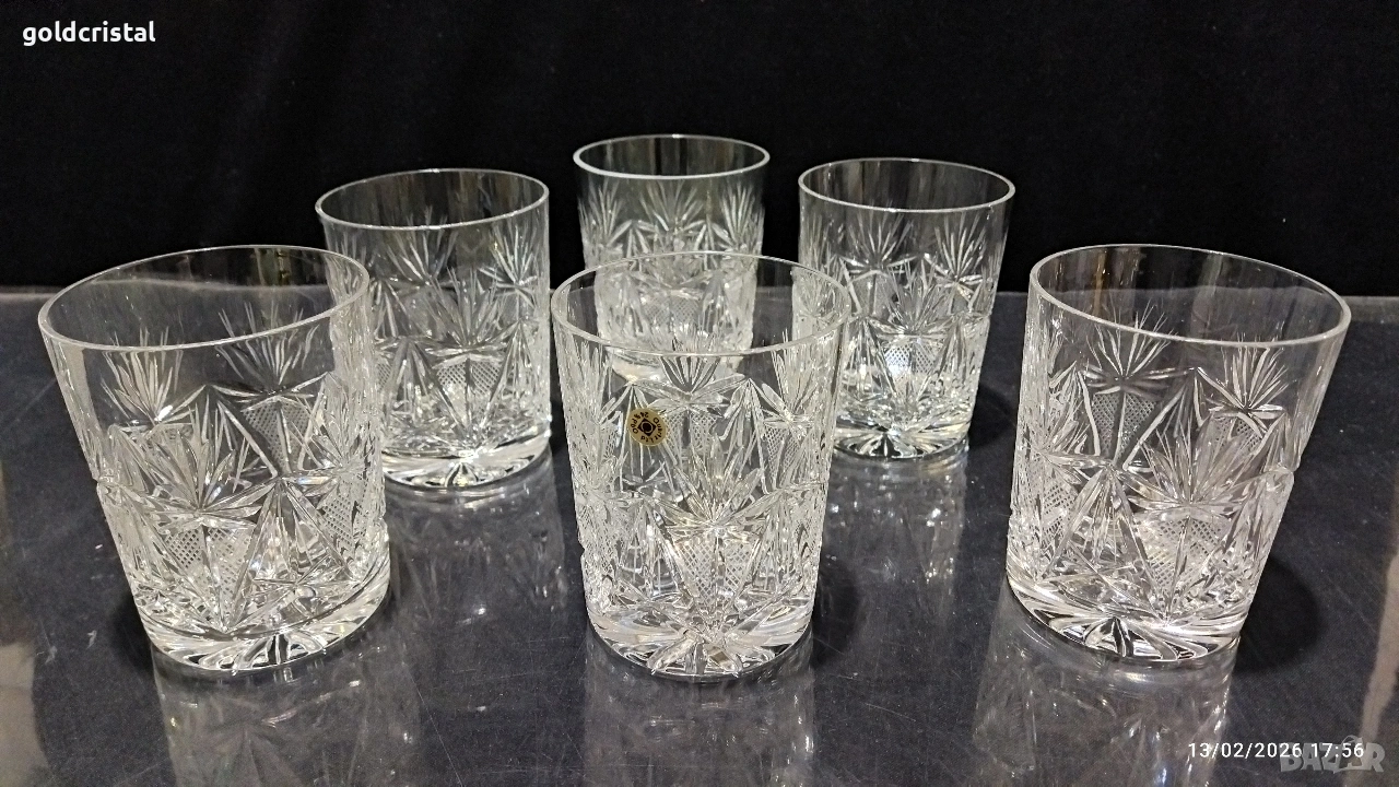 стар български кристал кристални чаши серия Олимпия за уиски луксозна серия 6 бр без забележки сервиз комплект сет лот ретро арт декор винтидж колекция стари старинни антикварни предмети обзавеждане за дома и семейството подходящи за подарък за ценители и колекционери