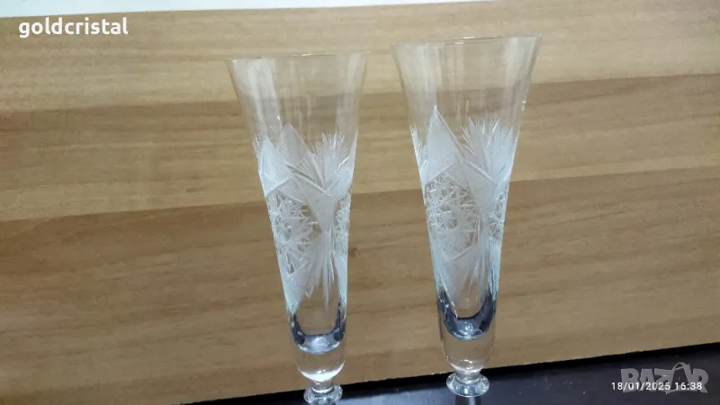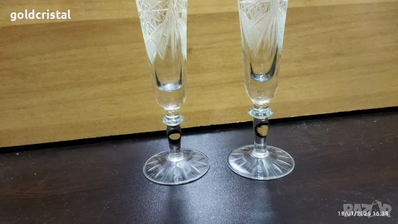 български кристал сватбени чаши луксозна серия ръчно гравирани неизползвани без забележки сервиз комплект сет лот ретро арт декор винтидж колекция стари старинни антикварни предмети обзавеждане за дома и семейството подходящи за подарък за ценители и колекционери