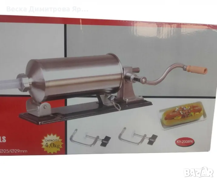 Ръчна машина за пълнене на колбаси,неръждаема стомана,капацитет 4 кг.