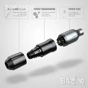 Добър за подплата и засенчване: Въртяща се писалка за татуировки Stigma, работното напрежение е 6-11 V, а максималният допустим въртящ момент е 6,68 oz.cm. Повърхността е матирана, ходът на иглата е 0-4,5 мм, дължината на иглата е 3,5 мм, а интерфейсът RCA.