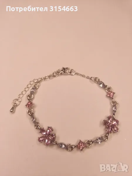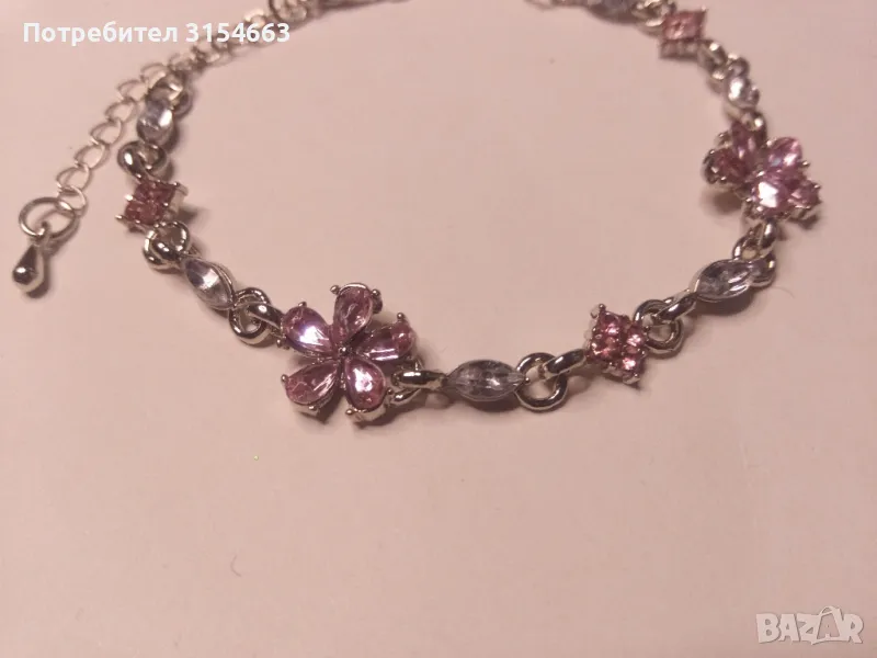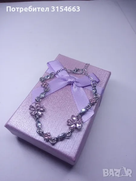 Гривна с кристали. С подаръчна кутия. Дължина на гривната 19 см + 5 см удължение. Размер на цветята 1 см на 1 см.