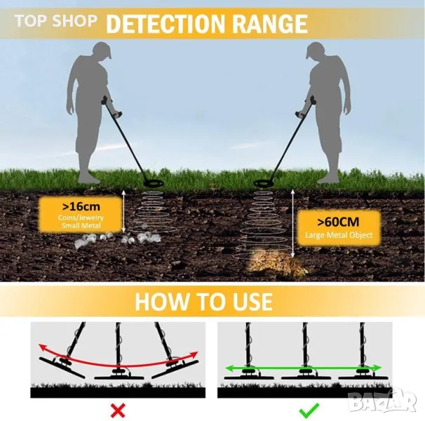 【3,5 мм жак за слушалки】: Можете да свържете слушалки (не са включени) към детския порт на металдетектора, за да слушате необезпокоявано. Използването на слушалки също спестява енергия от батерията и улеснява откриването на фините промени в звука, което води до по-добри резултати при разпознаване