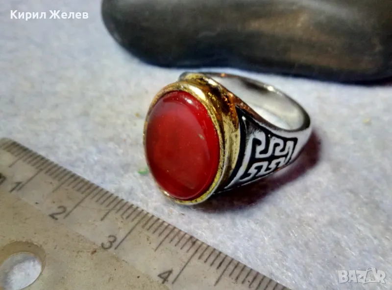КЛАСИЧЕСКИ ОРНАМЕНТИРАН СКЪПОЦЕНЕН ПРЪСТЕН с ШЛИФОВАН ЕСТЕСТВЕН КАРНЕОЛ от БЛАГОРОДНА СТОМАНА 3530