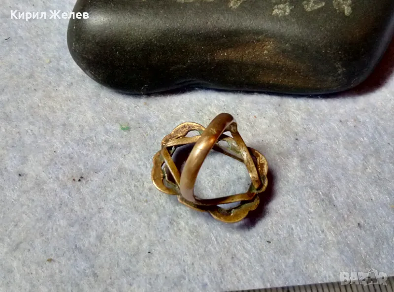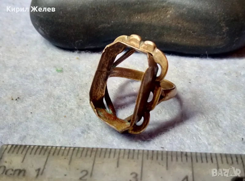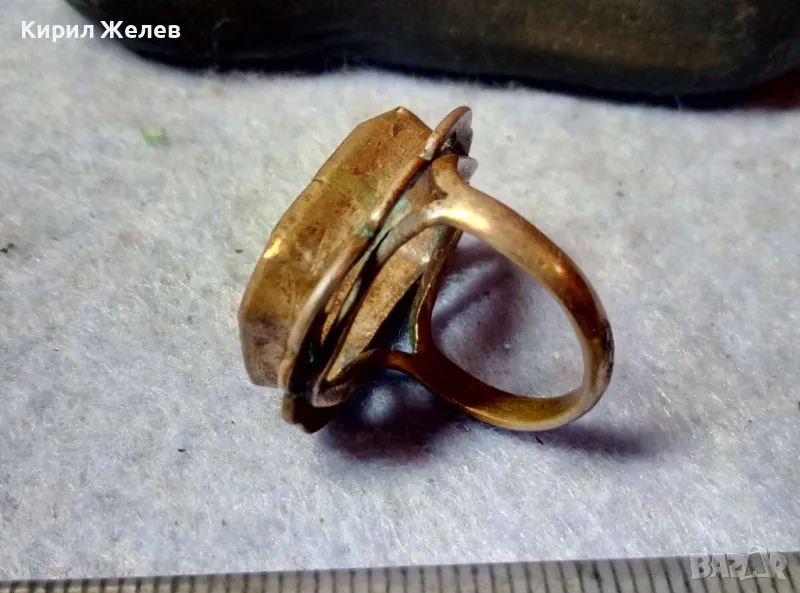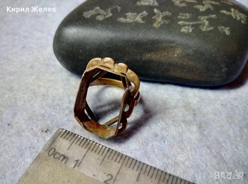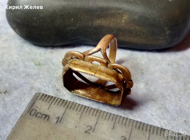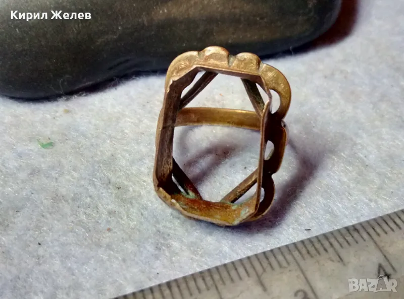 СТАРИНЕН МАЙСТОРСКИ МЕДЕН ПРЪСТЕН с ПОЗЛАТА и ГНЕЗДО За ВГРАЖДАНЕ на ГОЛЯМ СКЪПОЦЕНЕН КАМЪК 47464