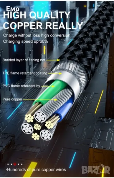 Uslion 3 в 1 за зареждане на телефони предлага универсална съвместимост с micro USB, Type C и Apple устройства.