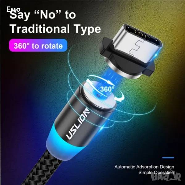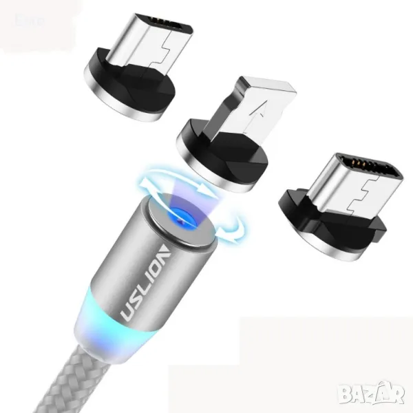 Универсален магнитен кабел Uslion 3 в 1 за зареждане на телефони - micro USB