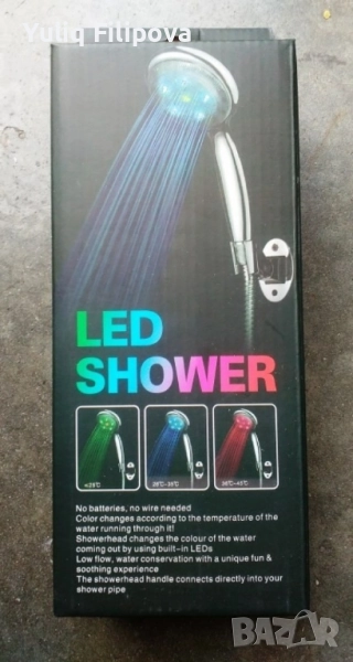 Нова оригинална LED слушалка за душ, която работи без батерии и свети в 7 цвята.