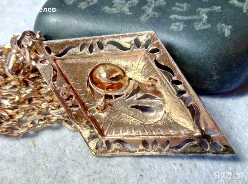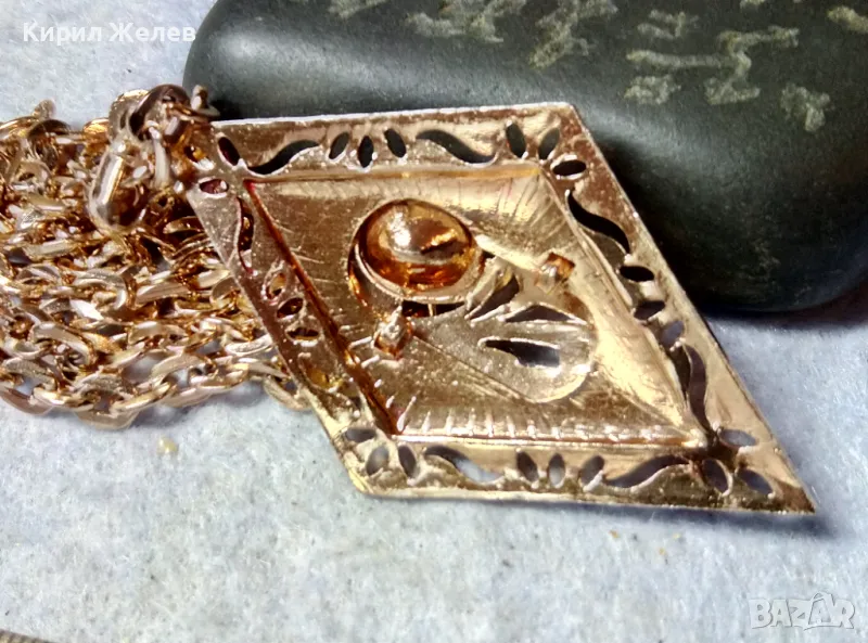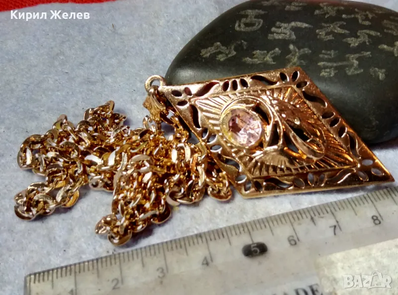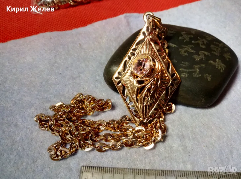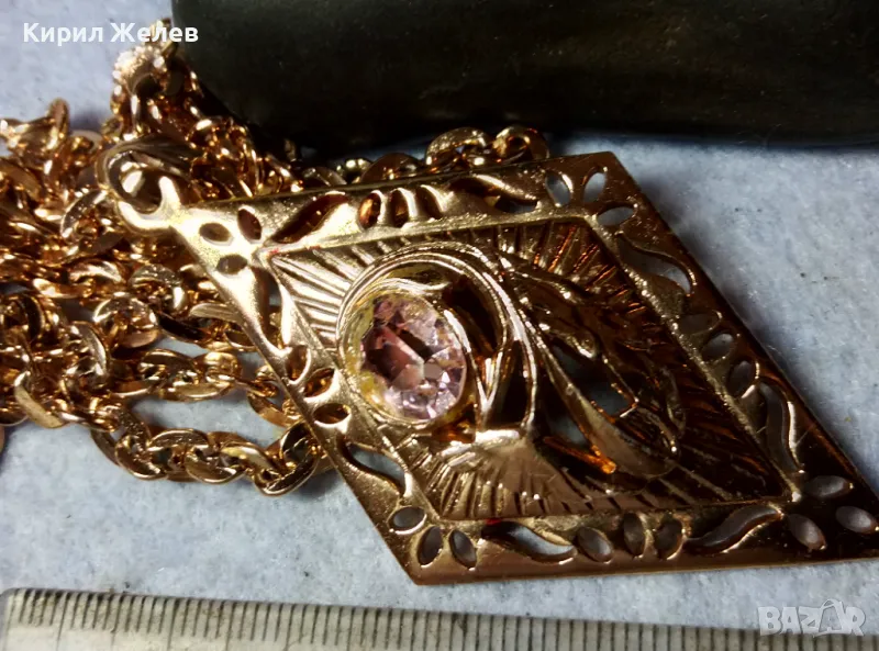СТАРО ПОЗЛАТЕНО РУСКО РЕТРО КОЛИЕ АЖУРЕН МЕДАЛЬОН с ФАСЕТИРАН ЦВЕТЕН КРИСТАЛ 47490 → Обява 48734436