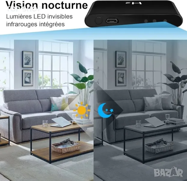 【Нощно виждане и батерия с голям капацитет】-- Оборудван с невидима инфрачервена светлина за нощно виждане, така че можете да записвате безопасно, без никой да забележи. Вградената 5000mAh акумулаторна литиева батерия записва 17 часа, когато е напълно заредена, тази мини шпионска камера поддържа запис по време на зареждане