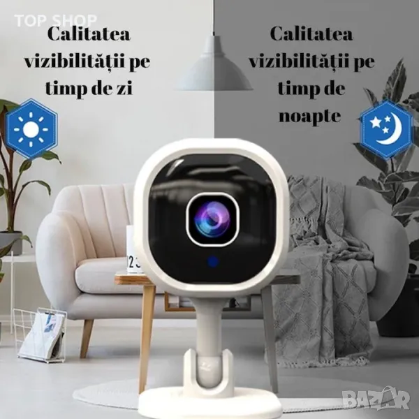 видеокамера за наблюдение, 1080P Ultra-Hd резолюция, WIFI свързаност, инфрачервено нощно виждане, сензор за движение, лицев фокус, аларма чрез известяване по телефона, функция за въртене на камерата, неоткриваем нощен режим