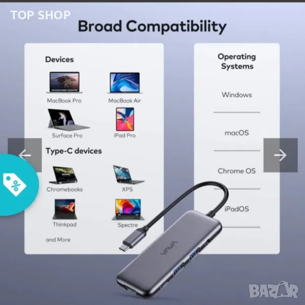 Универсална съвместимост: Съвместим с почти всички USB-C устройства, включително MacBook Air, MacBook Pro, iPad Pro, както и операционни системи, включително Windows и macOS