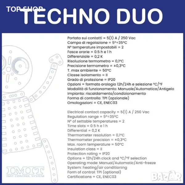 IMIT 578160 Цифров ежедневен термостат Techno Duo, бял,