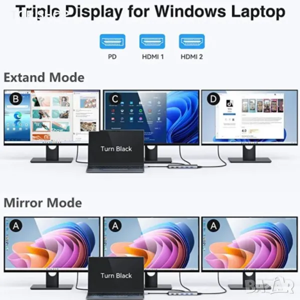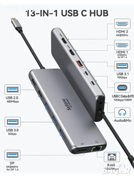 USB C докинг станция за два монитора, 13 в 1