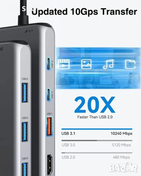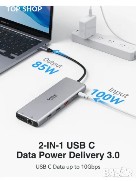 2 USB C порта за захранване с данни: Макс. 100 W PD вход, обратно с PD3.0. (Поддържа 10 GB трансфер на данни).