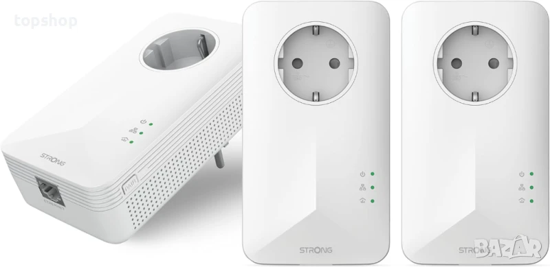 ЧИСТО НОВ STRONG Powerline 1000 Троен пакет, Комплект PowerLINE адаптери, 100 Mbit/s...