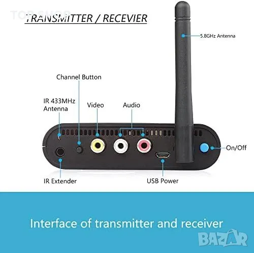 【Вграден 5,8 G wifi, предаване от точка до точка 】Безжичен rca приемник за предаване поддържа 5,8 GHz ISM честотна лента. Предавателят и приемникът могат да се използват в режими от точка до много точки. Вграденият 5.8G wifi кара изпращача и получателя да се свързват, няма нужда от локална wifi мрежа, за да работи. 5,8 GHz високочестотна схема на предаване, ясно и стабилно качество на картината.